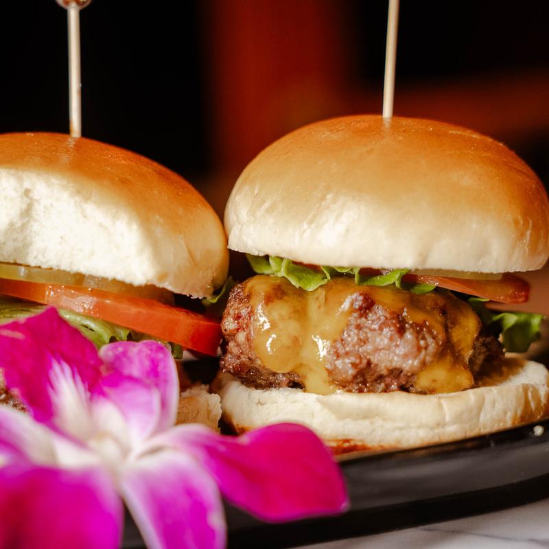50 $215.00 | 100 $420.00 | 150 $620.00 • Four mini sliders featuring wagyu beef, cheese, pickle, lettuce, and tomato, served on soft buns.