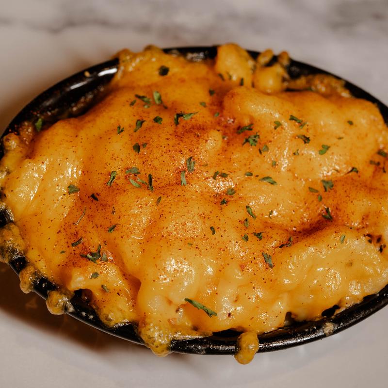 Creamy baked macaroni tossed in a velvety blend of hickory smoked cheeses.