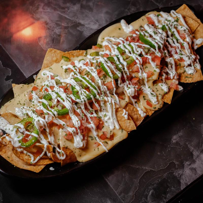 House-made tortilla chips covered with pico de gallo, sour cream, jalapeños, and cheese. Add Seasoned Meat: Chicken +$7.00 | Shrimp +12.00 | Salmon +15.00 | Steak +$11.00