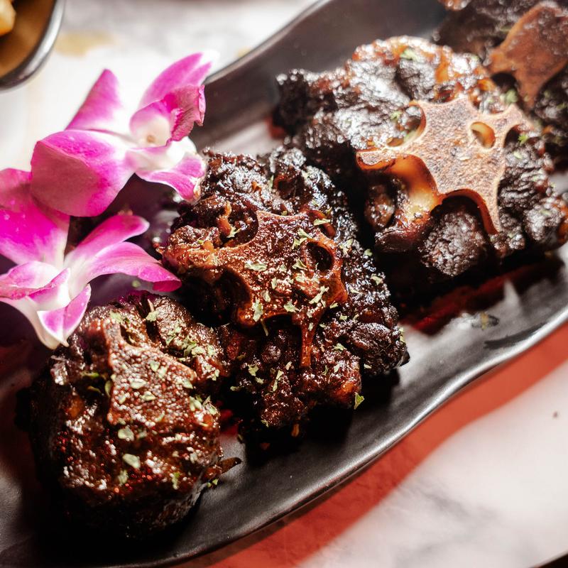 Slow-braised and oven-baked until fall-off-the-bone tender, our oxtails are simmered in a rich, savory gravy with herbs, aromatics, and deep roasted flavor in every bite.