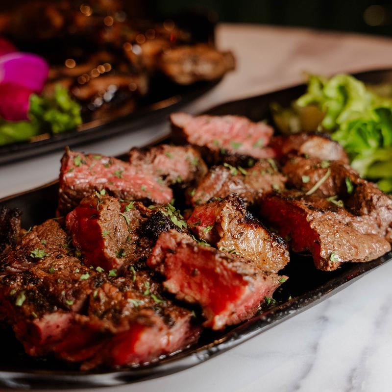 Tender steak bites (8 oz.) tossed in your choice of our house-made sauce (plain, garlic parm, lemon pepper, sweet heat BBQ, strawberry jalapeño) and seared to perfection.
