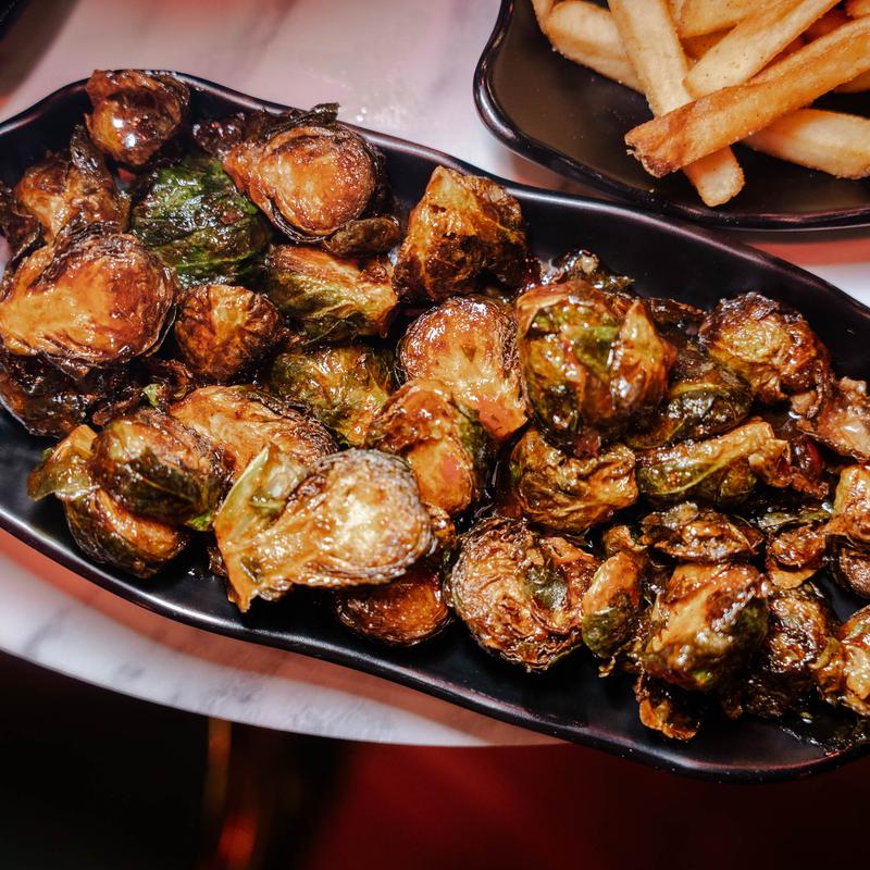 Roasted Brussels sprouts, tossed in house made balsamic sauce.
